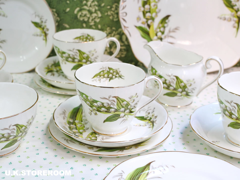 モダンブランドにアダレイのスズラン柄のティートリオ、BBプレート、クリーマー,シュガーボウルを4点、キャラクターにブランブリーへ―ジの「バースデー」のカップ&ソーサー、マグカップ、トリンケットボックスを3点、モダンブランドにホーンジーとシルバックの動物のベースを3点、合計10点をアップしました。
